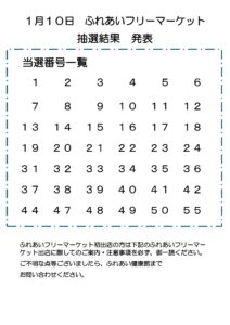2026年1月10日開催ふれあいフリーマーケット 抽選結果