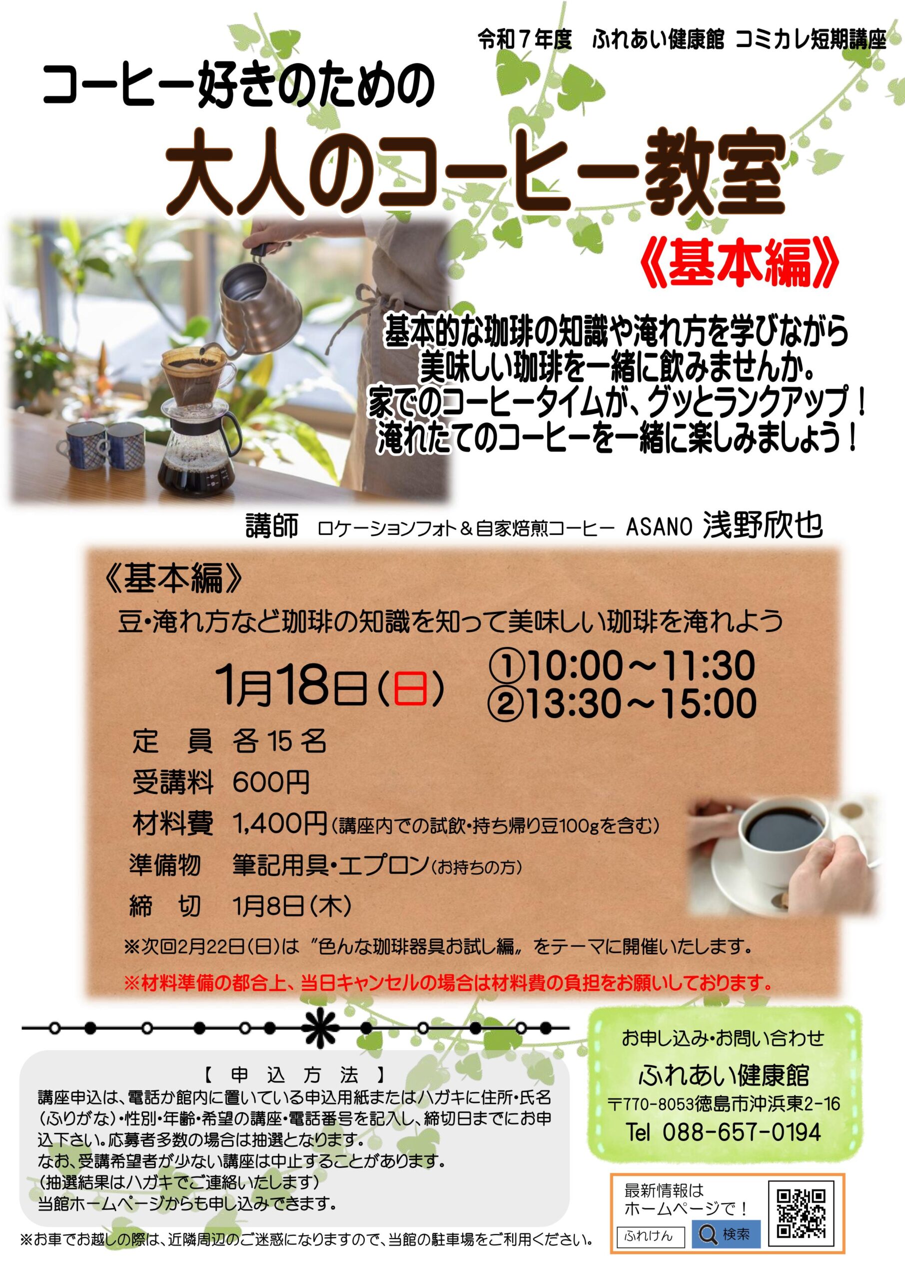 コーヒーについての基本的な知識や淹れ方を学べる講座や、
