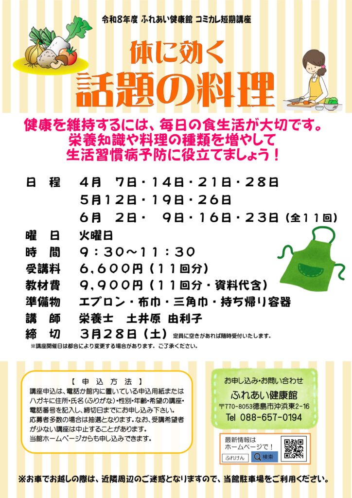 令和8年4月開講のお料理講座の募集を開始します!