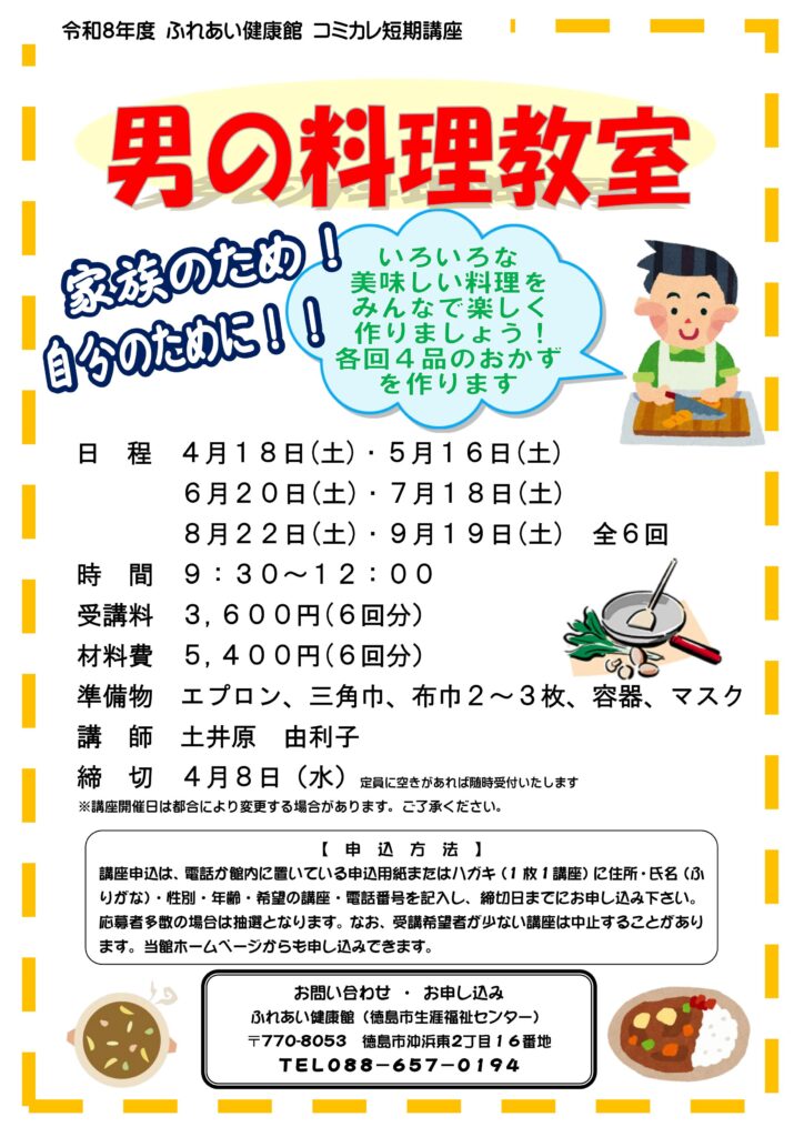男性の方を対象とした『男性料理教室』などなど、