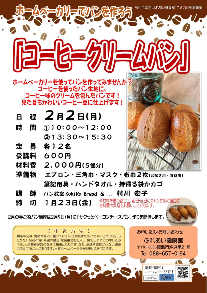 ふれあい健康館で開催するパン講座特集です☆彡